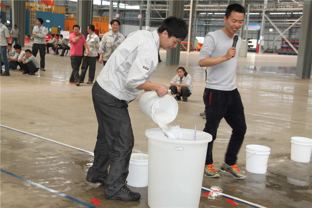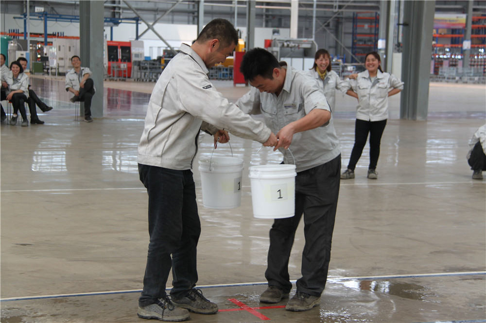 下午13:30在運動(dòng)場(chǎng)出現了擺放有序的水桶,這是我們的第二項活動(dòng):精益運輸大接力,取水點(diǎn)的距離分別大于等于10米,每個(gè)桶分別裝滿(mǎn)10L水,每組隊員是五個(gè)人,要在120秒內完成大桶水量的收集,超過(guò)120秒的隊員淘汰出局,在規定的時(shí)間內,水量收集多者獲勝,抽簽決定出場(chǎng)順序,這項活動(dòng)是讓員工明白精益化生產(chǎn)體系的精髓所在之處;減少過(guò)程浪費,實(shí)現低成本的快速交付,滿(mǎn)足客戶(hù)的同時(shí),做到細節控制,提升產(chǎn)品使用價(jià)值,提升公司盈利空間。比賽開(kāi)始了只見(jiàn)隊員雙手提起20L的水往下一站的隊友那里送,中間會(huì )有灑水會(huì )很累,但是每個(gè)人都為了自己隊伍的榮譽(yù)拼盡全力向終點(diǎn)奔去,旁邊的隊友為他們加油、吶喊,最終自焊獲得第一名。