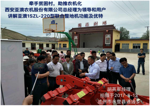 為支持西部貧困地區(qū)農(nóng)機化發(fā)展,2017年6月13日,中國農(nóng)業(yè)機械化協(xié)會聯(lián)合西安亞澳、甘肅福祥等五家國內(nèi)知名農(nóng)機裝備企業(yè)為甘肅省永登縣通遠鄉(xiāng)團莊村捐贈了價值約50萬元的農(nóng)機產(chǎn)品和現(xiàn)金。